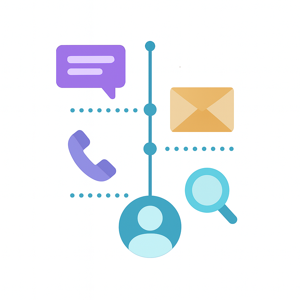 E-maile, czaty, SMS-y, telefon, spotkania – wszystkie interakcje z klientem widoczne chronologicznie w karcie CRM. Pełny kontekst relacji i szybsza reakcja zespołu.