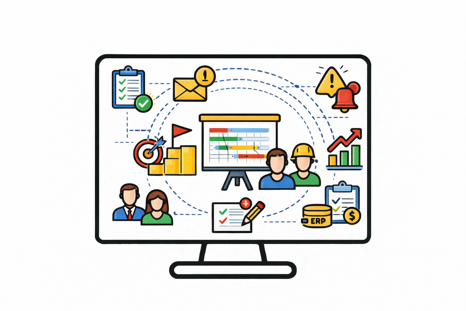 Rozwiązanie wspiera planowanie i koordynację zasobów – ludzi, sprzętu i materiałów. Automatyczne harmonogramy, kontrola realizacji zleceń oraz raportowanie wydajności pozwalają utrzymać płynność operacyjną i ograniczać przestoje.