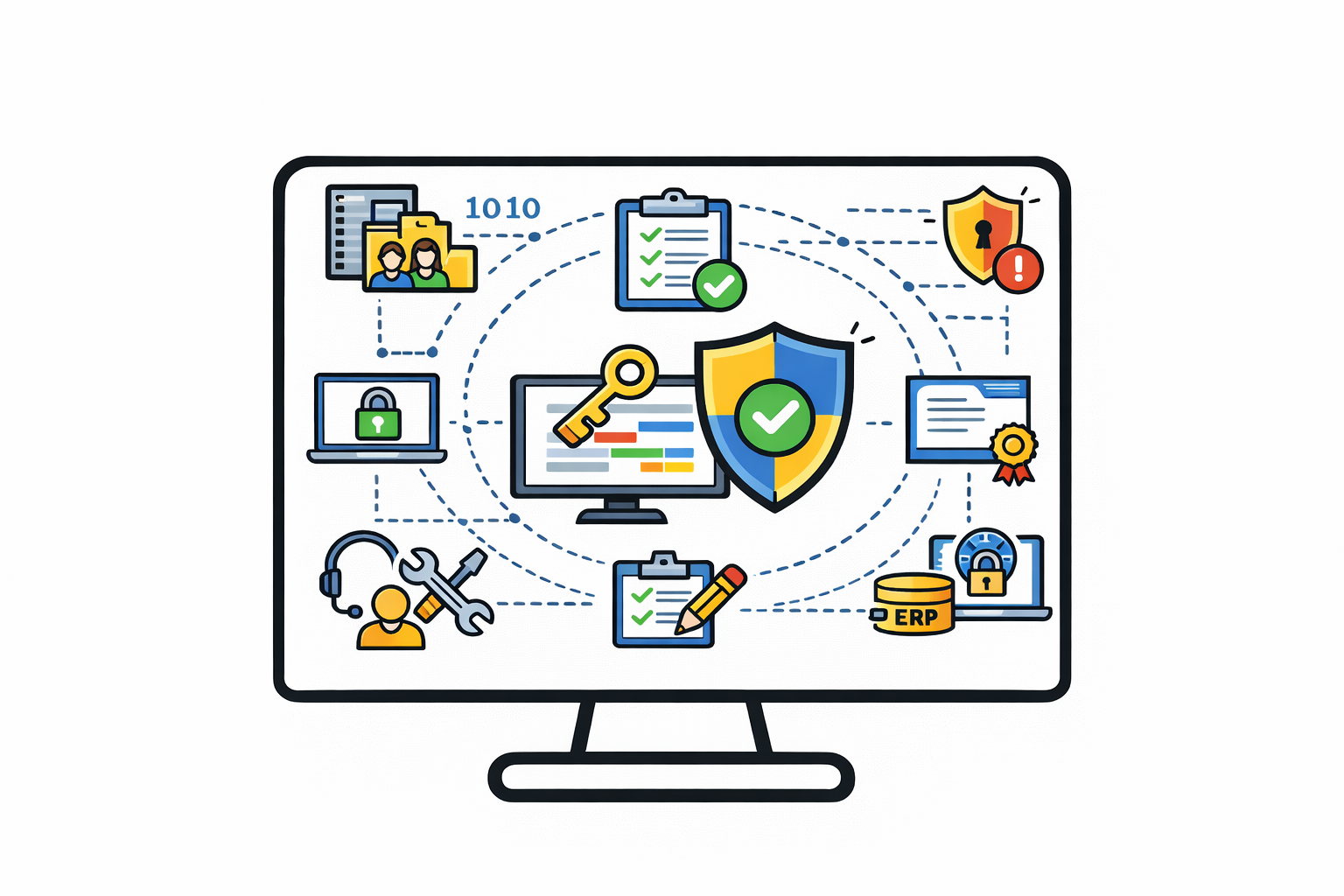Procesy nadawania dostępów, zarządzania licencjami i obsługi zgłoszeń realizowane są w oparciu o zadania i workflow. Automatyczne powiązanie z cyklem życia pracownika minimalizuje ryzyko nieautoryzowanego dostępu i usprawnia obsługę zgłoszeń.