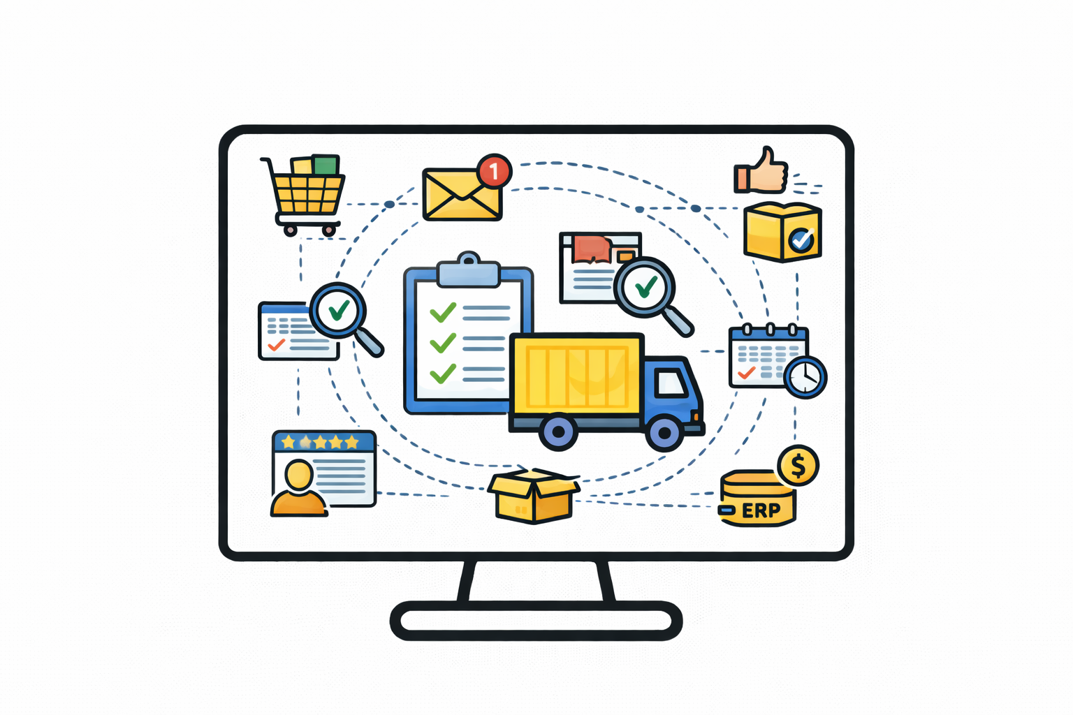 Proces zamówień jest zautomatyzowany od zgłoszenia zapotrzebowania po rozliczenie dostawy. System kontroluje terminy, przypomina o koniecznych działaniach i umożliwia ocenę dostawców, zapewniając ciągłość zaopatrzenia i optymalizację kosztów.