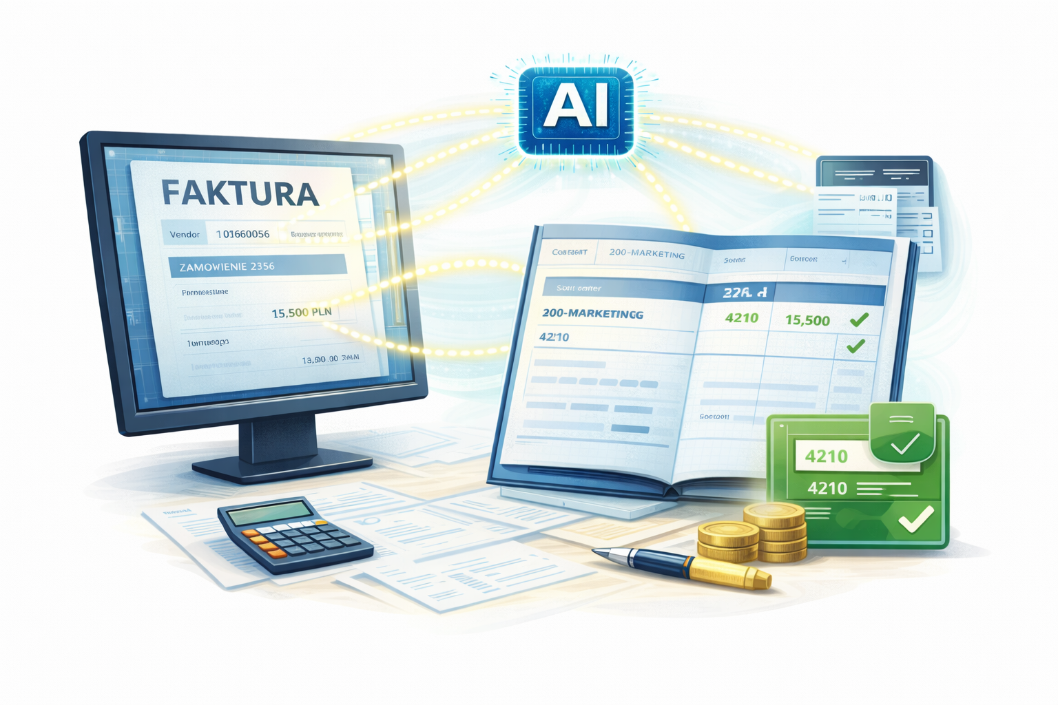 Po przejściu przez kolejne etapy akceptacji faktura zostaje automatycznie przypisana do odpowiedniego konta księgowego, zgodnie z przyjętym schematem dekretacji w systemie ERP.