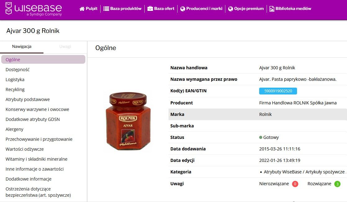 • integrację z bazą Wisebase poprzez możliwość wyeksportowania odpowiednio sformatowanego pliku .xls, pozwalająca na bezpośrednie zaczytanie produktów na platformie Wisebase: