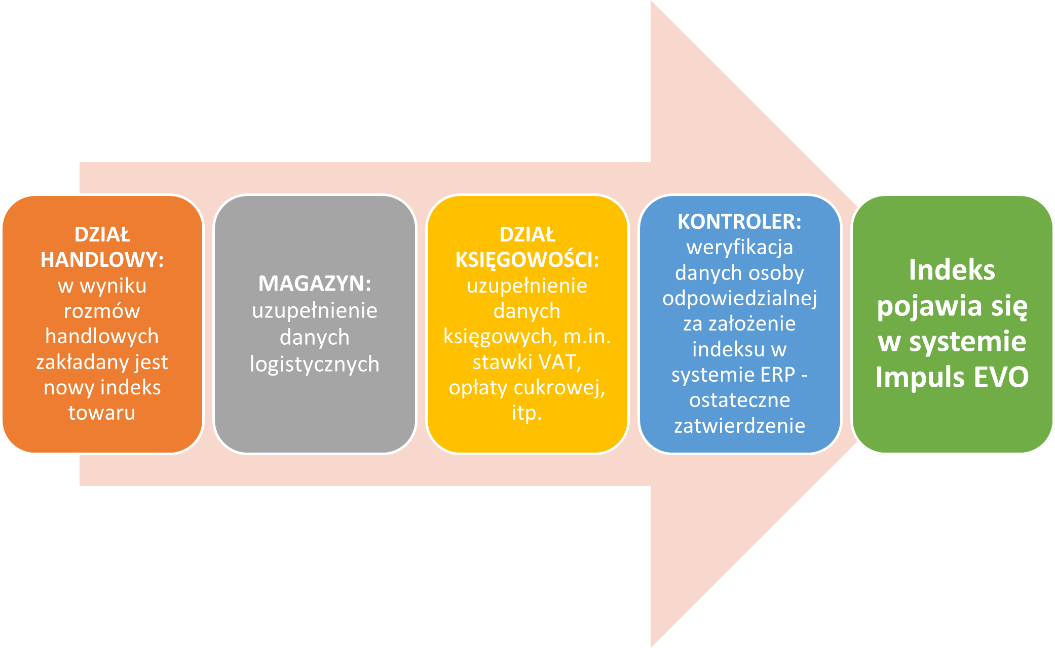 - zmiana sposobu organizacji z nieefektywnego, powodującego przypadki zakładania indeksu w momencie dostawy na magazyn na uporządkowany proces, który rozpoczyna się po uzgodnieniach handlowych z klientem