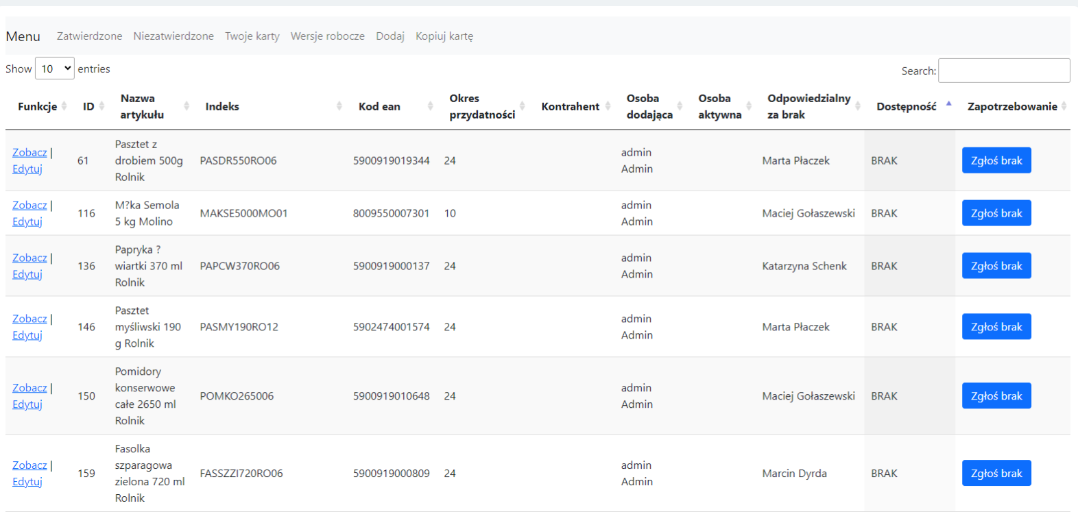 Istnieje również możliwość rozbudowy funkcjonalności m.in. o proces aktualizacji danych przez producenta. W przypadku zmiany parametrów surowców, czy też receptury, które ze względu na dynamiczną sytuację rynkową zdarzają się często.